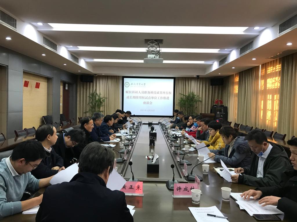 本网讯12月20日,省科技厅牵头在我校召开安徽省赋予科研人员职务科技成果所有权或长期使用权改革试点单位工作推进座谈会。省教育厅、中国科学技术大学,被确定为首批赋予科研人员职务科技成果所有权或长期使用权改革试点单位的安徽农业大学、安徽工业大学、安徽大学、安徽工程大学、安徽医科大学等5所高校分管副校长和职能处室(部门)负责同志参加会议。