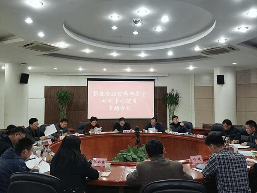本网讯12月22日下午,我校和安徽省市场监督管理局研究推进食品营养与安全研究中心建设工作。省市场监督管理局一级巡视员高宗宏主持会议,我校党委常委、副校长操海群出席会议。省科技厅社会发展科技处处长李静,茶与食品科技学院、省产品质量监督检验研究院、省食品药品检验研究院、中科院合肥物质科学研究院相关负责同志及相关专家20余人参会。