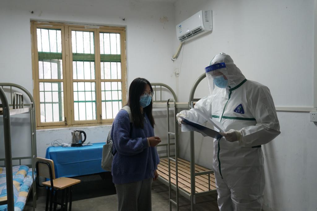 校疫情防控领导小组相关人员参加演练,各学院党委副书记,校医院医护人员、物业公司、保安公司、饮食中心、宿管中心工作人员及部分辅导员现场观摩。(通讯员:王政)