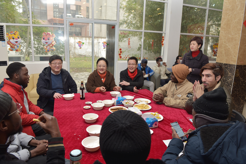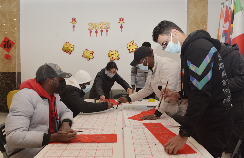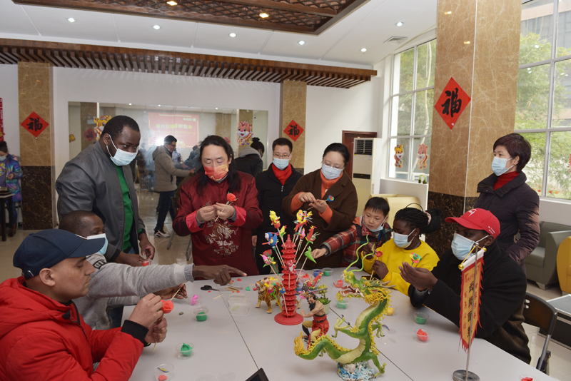 本网讯1月30日下午,我校举办了外国留学生同度中国年活动。跟着非遗传人学习捏面人、写春联、贴窗花、包饺子……广大留学生在丰富多彩的活动中,感受到了浓浓的中国年味儿。党委常委、副校长李红,党政办、国际教育学院负责同志参加了活动。