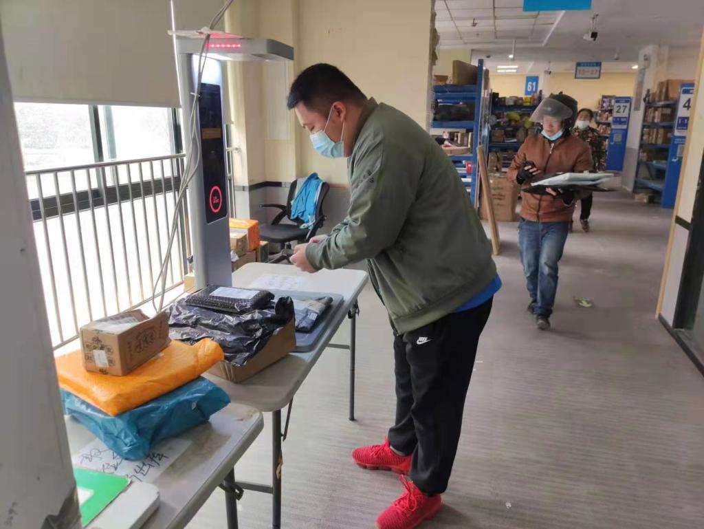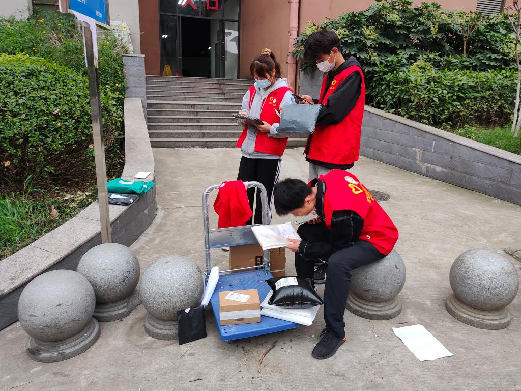 很多学生志愿者也动员起来,每天收集并汇总同学们的取件码和相关信息,集中前往校外快递中心取回快递,并有序分发给同学们。