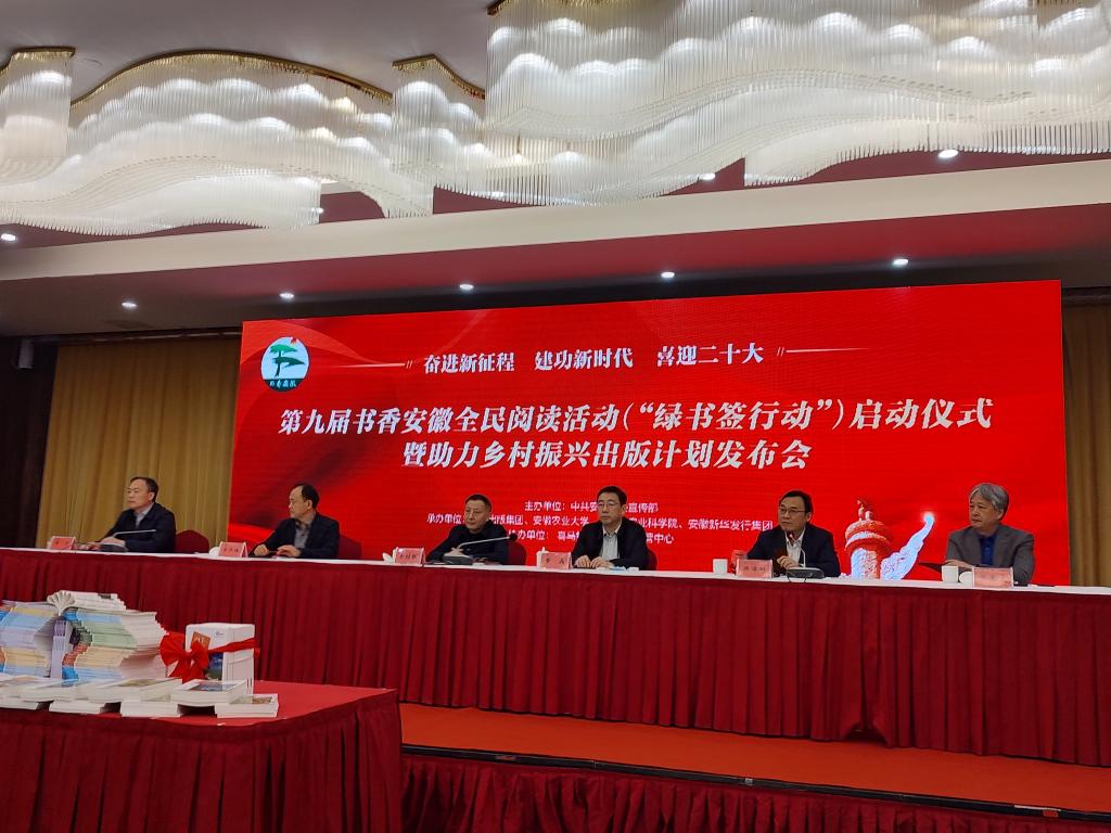 本网讯 4月20日,由省委宣传部主办的第九届书香安徽全民阅读活动(“绿书签行动”)启动仪式暨助力乡村振兴出版计划发布会在合肥举办。党委常委、副校长操海群出席会议并代表主要编写单位致辞。新农院常务副院长王华君参加了会议。