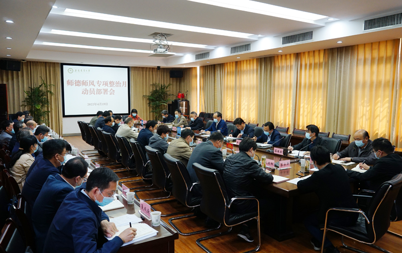 本网讯 4月19日下午,我校在第三会议室组织召开师德师风专项整治月动员部署会议,校领导夏涛、马传喜、陈文兵、操海群,师德建设与监督委员会成员单位负责人以及各二级单位主要负责人参加会议。会议由常务副校长马传喜主持。