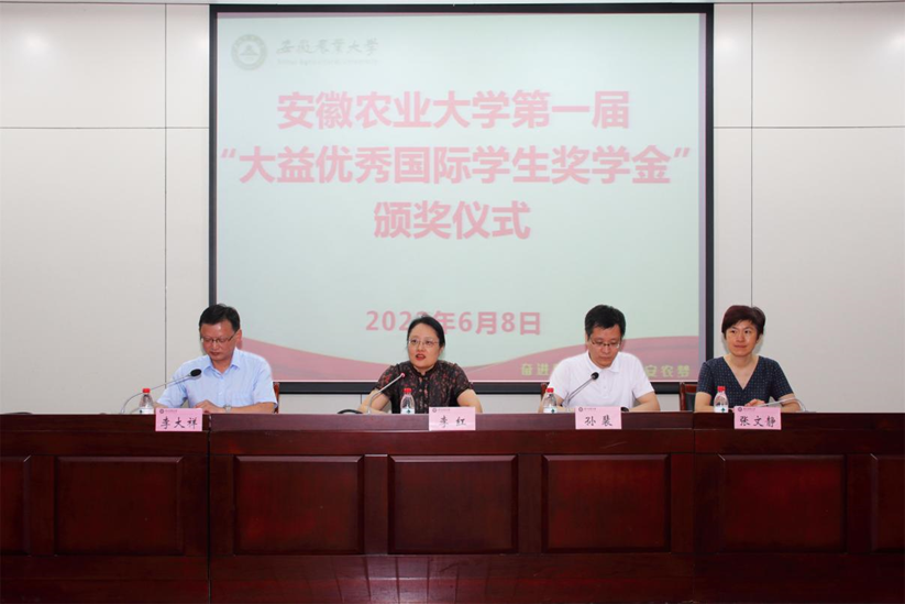 本网讯 6月8日下午,我校首届“大益优秀国际学生奖学金”颁奖典礼在图书馆第二报告厅举办。校党委常委、副校长李红参加会议。茶与食品科技学院负责人、国际教育学院全体师生参加此次活动。