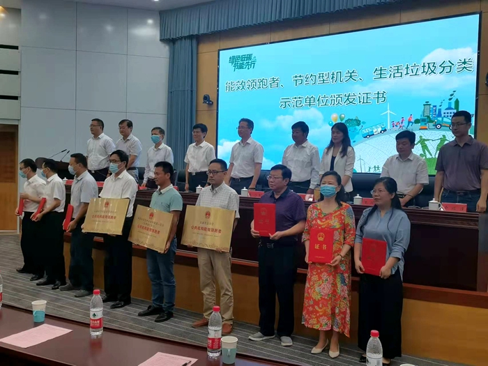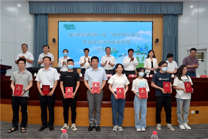 在第四届“讲好节能故事”微视频、摄影及征文征集活动评选中,我校广大师生积极参与,热情投稿,用自己的方式践行环保节能,最终我校有三项作品获奖,6月13日在合肥工业大学举办的“2022年安徽省公共机构暨合肥工业大学节能宣传周”活动中,为我校颁发了三部委联合评选的公共机构能效领跑者奖牌,并为我校在该项赛事中获奖的学生颁发证书。