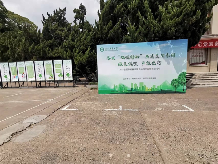 节能宣传周期间,学校精心设计了宣传海报和横幅,定制了易降解印有节能元素的环保袋,分别在大礼堂门前广场、学生公寓门口开展主题宣传教育;指导幼儿园开展主题绘画、光盘行动和变废为宝手工制作等主题活动,从“娃娃”开始抓起节能教育。