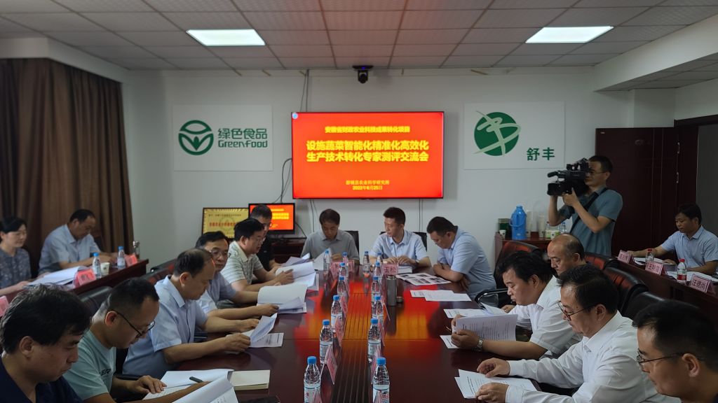 本网讯 为贯彻落实省委省政府促进科技成果转化重点工作部署,更好地服务省委“两强一增”行动方案,近日,由我校主持的安徽省农业科技成果转化项目“设施蔬菜智能化精准化高效化生产技术转化”中期专家测评交流会在舒城县农业科学研究所桃溪红光试验基地成功举行。省农业农村厅、中国科技大学、省农业信贷融资担保有限公司等单位的相关专家参会会议。校党委常委、副校长操海群出席会议。会议由省农业科学院科研管理处负责人主持。