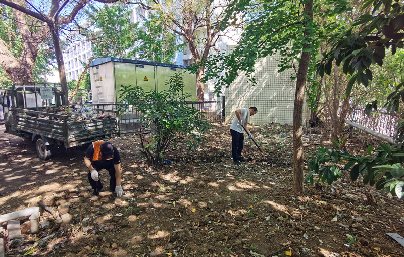 后勤保障处组织物业在清理卫生死角