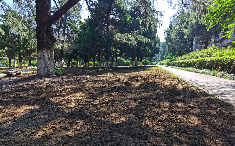 勤政楼后翻过的土壤,将重新种草
