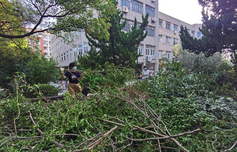 继续教育学院教职工在清理树枝