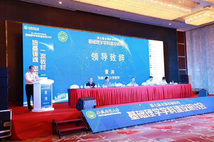 本网讯 7月20日至22日,第七届全国农林院校基础理学学科建设研讨会在我校举办。会议采取线上线下方式进行,共同研讨“双一流”背景下农林院校基础理学学科内涵发展、对人才培养的支撑作用及与农林学科交叉融合思路等。来自华中农业大学、南京农业大学、西南林业大学等全国20多所农林院校及在肥高校的理学院党政负责人、教师代表共120余人参加了线下会议。校长夏涛出席会议并致辞。