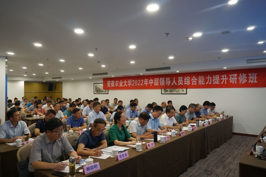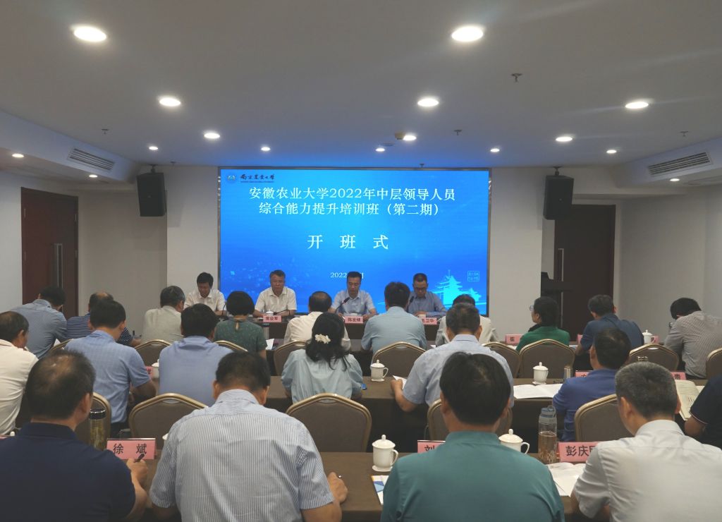 本网讯 7月29日,学校中层领导人员综合能力提升研修班(第二期)在南京农业大学开班。校党委书记常业军出席开班式并作动员讲话。南京农业大学校长陈发棣在开班式上致辞。南京农业大学继续教育学院、乡村振兴学院党总支书记、院长毛卫华主持开班式。