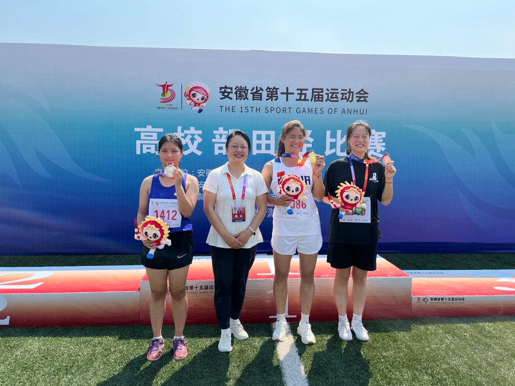 本网讯 8月18日上午,我校茶与食品科技学院2020级研究生张秀梅喜获安徽省第十五届运动会高校部田径比赛女子甲组标枪冠军,竞赛成绩30.54米,该枚金牌也是省运会高校部田径比赛首枚金牌。校党委常委、副校长李红全程观看了比赛,并为张秀梅颁奖。(尹维增 通讯员:李诚刚)