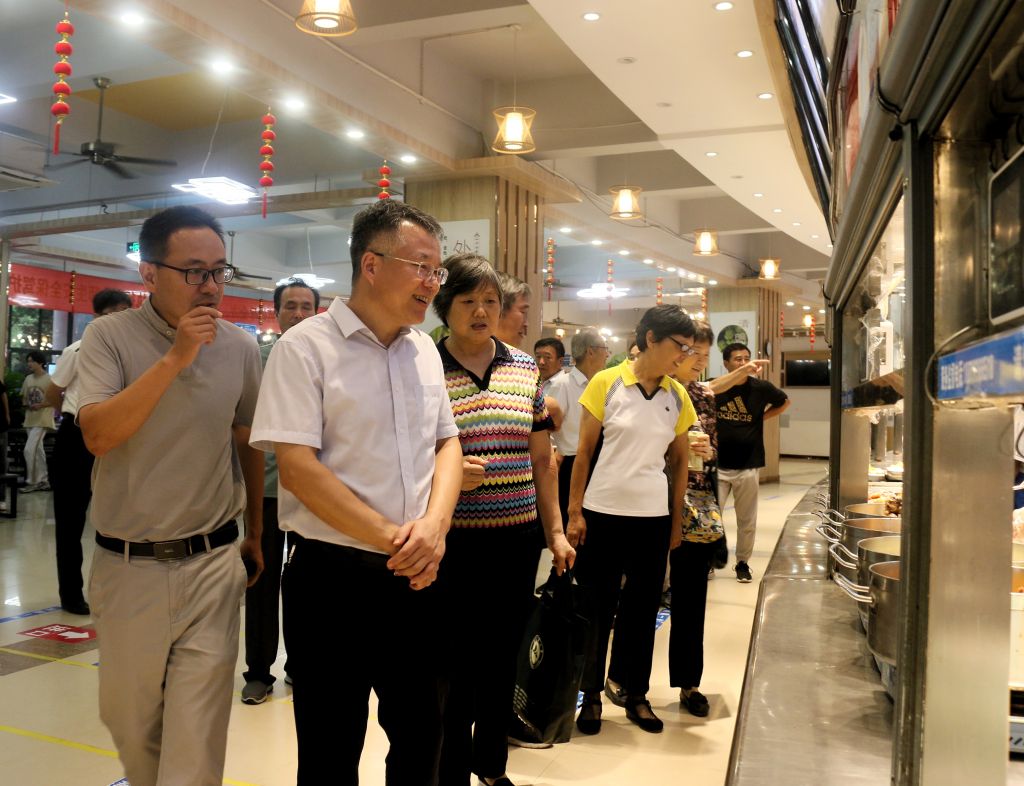 退休老同志、学生督查员一行,迎着徐徐凉风,惬意漫步校园、边走边查边谈,先后深入林学与园林学院小院,研究生公寓综合楼B楼、朝阳楼,大学生公寓AB楼,东苑、西苑和丰泽食堂,仔细检查环境整治、重点工程推进、行道树栽种、零星维修施工等情况。在大学生公寓大屏前大家驻足观看了“双一流”创新提升工程规划设计宣传片、校园环境综合整治专题片。