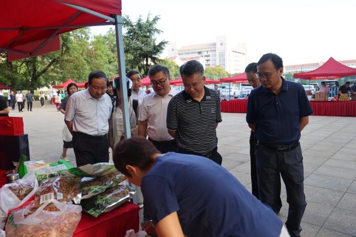 本网讯 为进一步促进消费帮扶,展示我校县域产业联盟的科技成果和服务新型农业经营主体成果,提升学生学农爱农的兴趣,丰富节日职工生活,9月6日上午,我校“第四届县域产业联盟优质特色农产品展销会(消费帮扶)”教师节专场在欣苑食堂西侧广场举办。校党委书记常业军,党委常委、副校长操海群前往展会现场参观并指导工作。