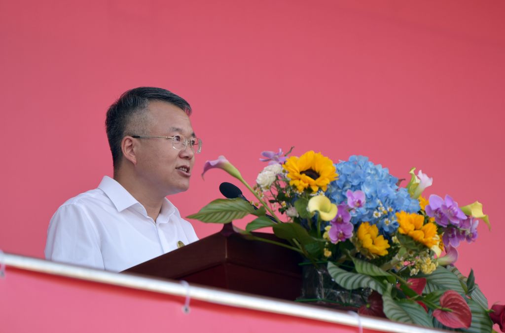 9月17日上午,我校在田径运动场举行2022级新生开学典礼暨军训动员大会。校党委书记常业军代表学校向新生的到来表示衷心的祝贺和热烈的欢迎,并以“扎根泥土 向阳生长”为题,为广大新同学上了“开学第一课”。他表示,开学典礼是“入门仪式”,也是大学“第一课”,希望同学们要认识自我,做意气风发的安农人;要了解学校,做理直气壮的安农人;要拥抱时代,做担当奉献的安农人。
