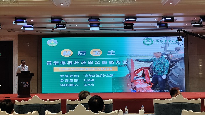 我校红旅公益组项目《逐梦青农人——小麦生产提质增效公益服务团》作为金奖项目代表上台领奖。马传喜对我校入围国赛的9个项目进行了深入了解,并对于后期项目打磨、国赛路演提出要求、寄予厚望。