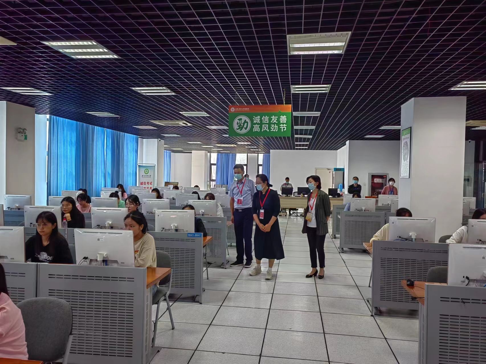 本网讯 9月24日-26日,第66次全国计算机等级考试(安徽农业大学考点)在校图书馆6楼电子阅览室举行。校党委常委、副校长李红,学校相关部门以及继续教育学院负责人对考试工作进行了全程巡考与现场指导。