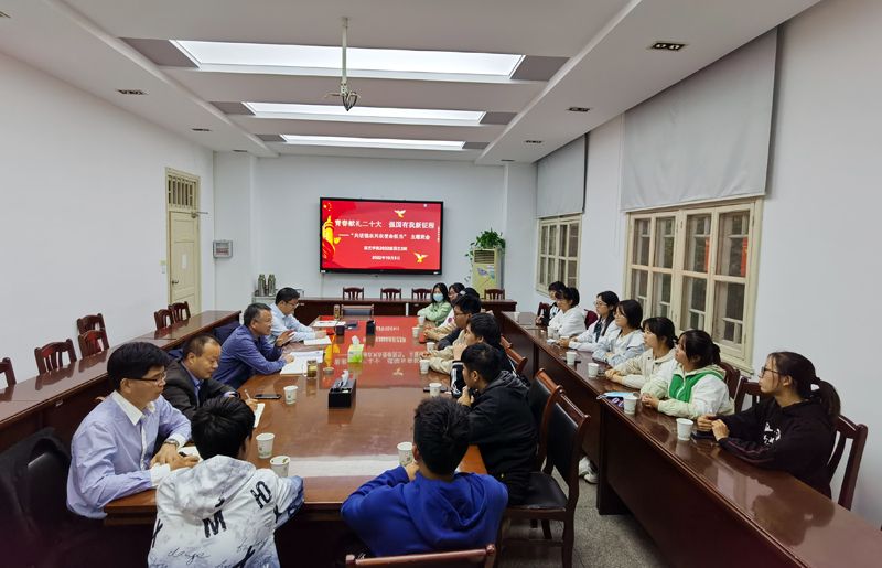 班会以“青春献礼二十大 强国有我新征程——共话强农兴农使命担当”为主题。党政办、宣传部、后勤保障处、园艺学院负责同志参加了班会。