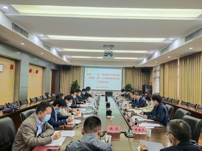 本网讯 10月27日下午,学校召开服务“三农”领域需求和“两强一增”行动工作推进会,相关职能部门负责人、各学院科研副院长以及高质量发展工作专班全体人员参加了会议。会议由校党委常委、副校长操海群主持。