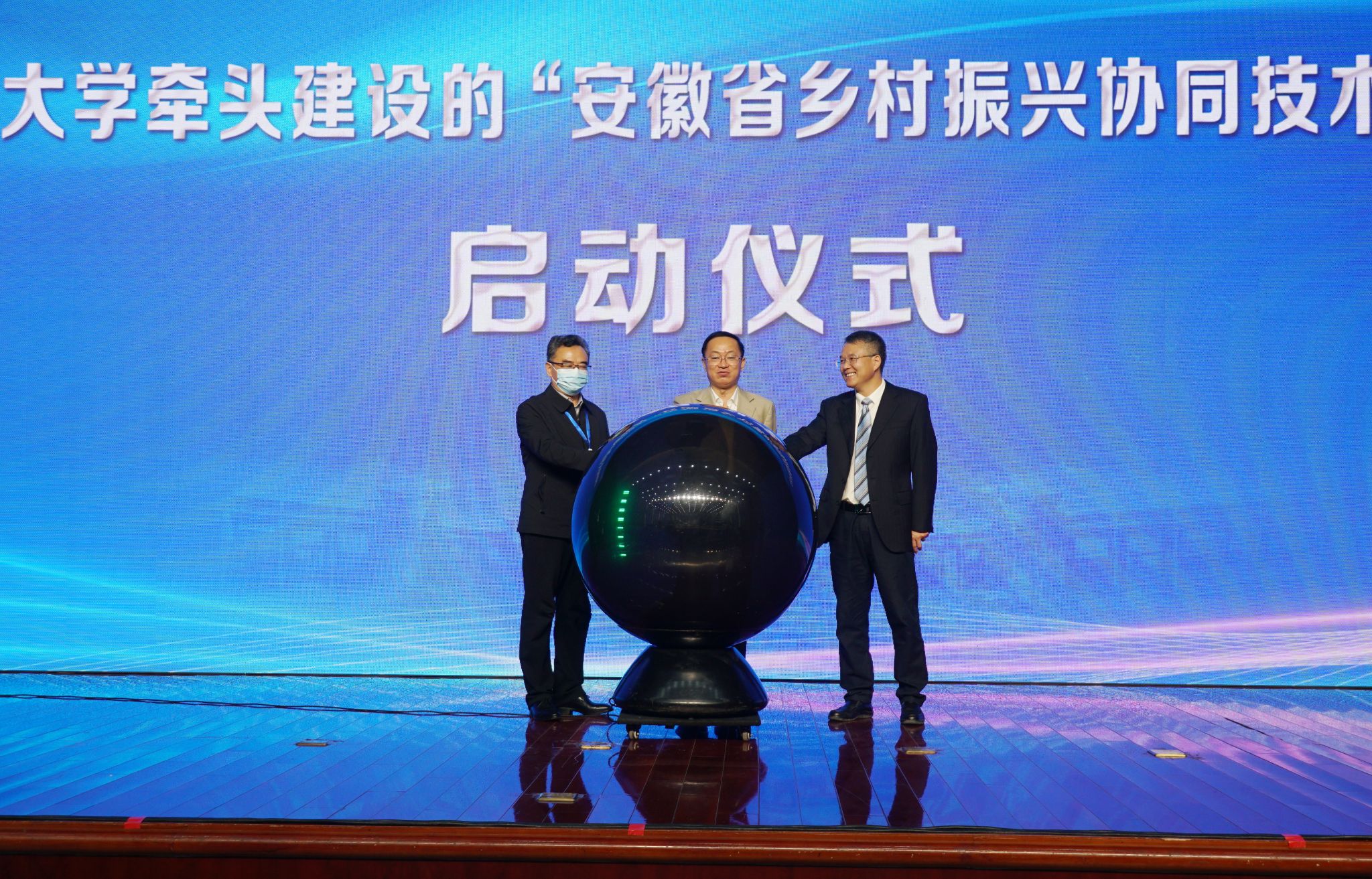 杨增权、朱永东和常业军共同启动安徽省乡村振兴协同技术服务中心。