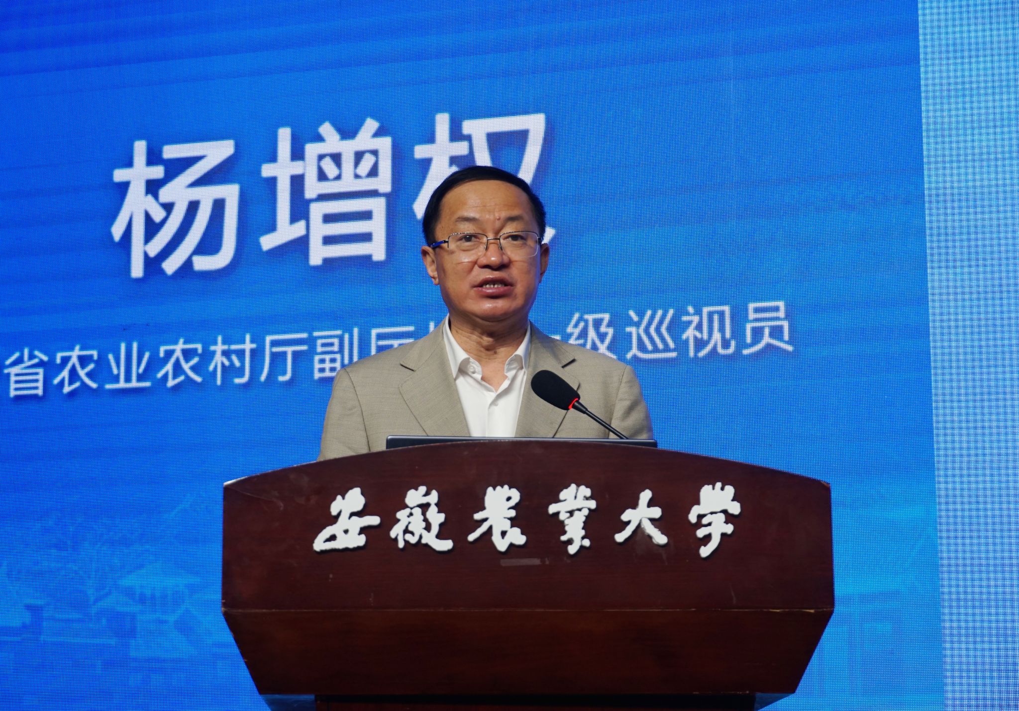 常业军在致辞中指出,本次论坛旨在深入贯彻落实党的二十大精神,探索全面推进乡村振兴新路径,谋划乡村全面振兴新举措,寻求共推乡村振兴新机制,并对学校助力乡村振兴工作作了介绍。他表示,作为农业大学,有责任在助力“两强一增”,赋能乡村产业、人才振兴中打头阵、挑重担,学校将坚定服务“三农”的办学方向,充分发挥人才库、创新源、智囊团的作用,与省农业农村厅、乡村振兴局及各市县区加强交流,深化合作,打造一批两强一增、乡村振兴的“安农样板”,形成可复制、可推广的“安农经验”,努力在推动我省由农业大省向农业强省转变中当主力、作贡献。