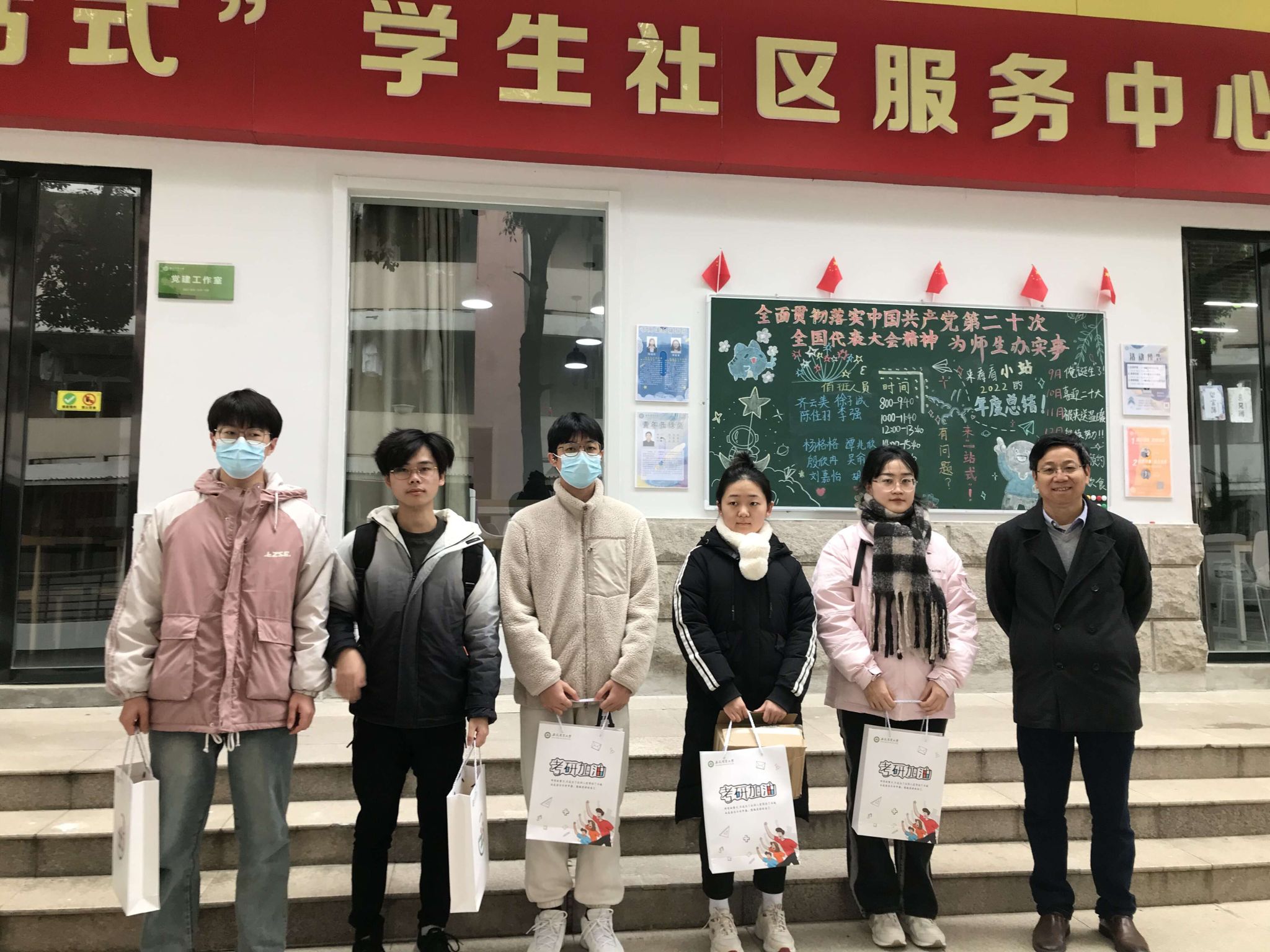 为了给受资助学生办实事、送温暖,学校为即将参加2023年全国硕士研究生招生考试的建档立卡等七类群体学生特别定制了考研加油礼包。12月9日上午,校党委副书记裴树东到“一站式”学生社区服务中心为同学们发放礼包,预祝同学们考研顺利。