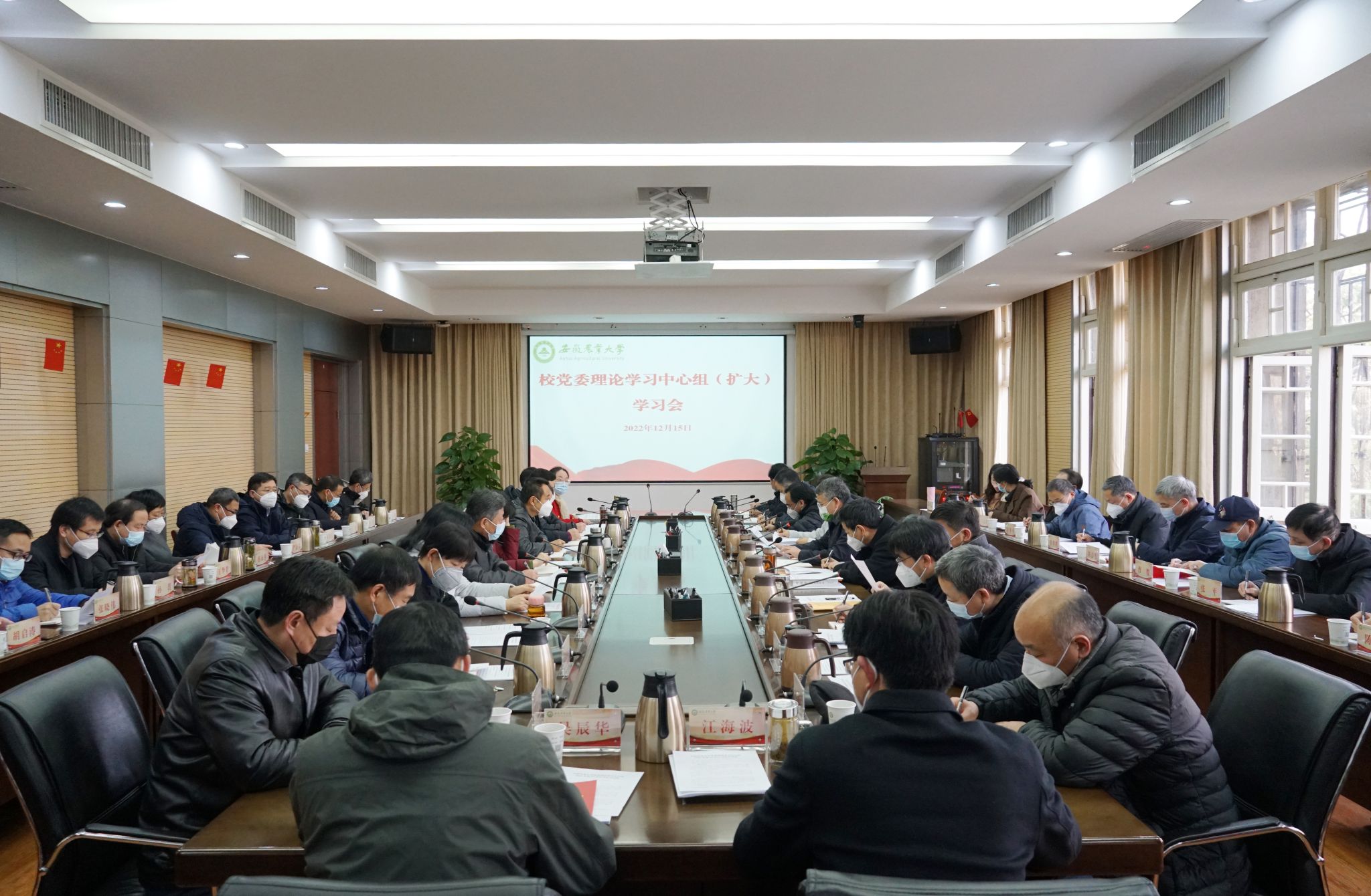 本网讯 12月15日上午,校党委理论学习中心组围绕学习贯彻党的二十大精神、维护校园安全稳定开展专题学习。校党委书记常业军主持会议。校党委中心组成员、各二级党组织书记参加会议。