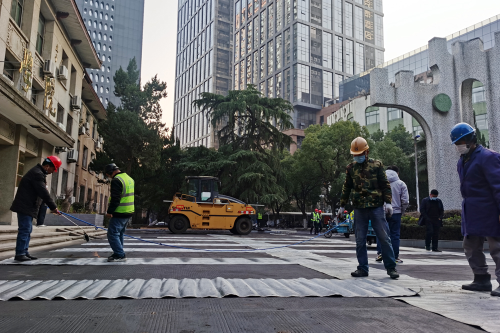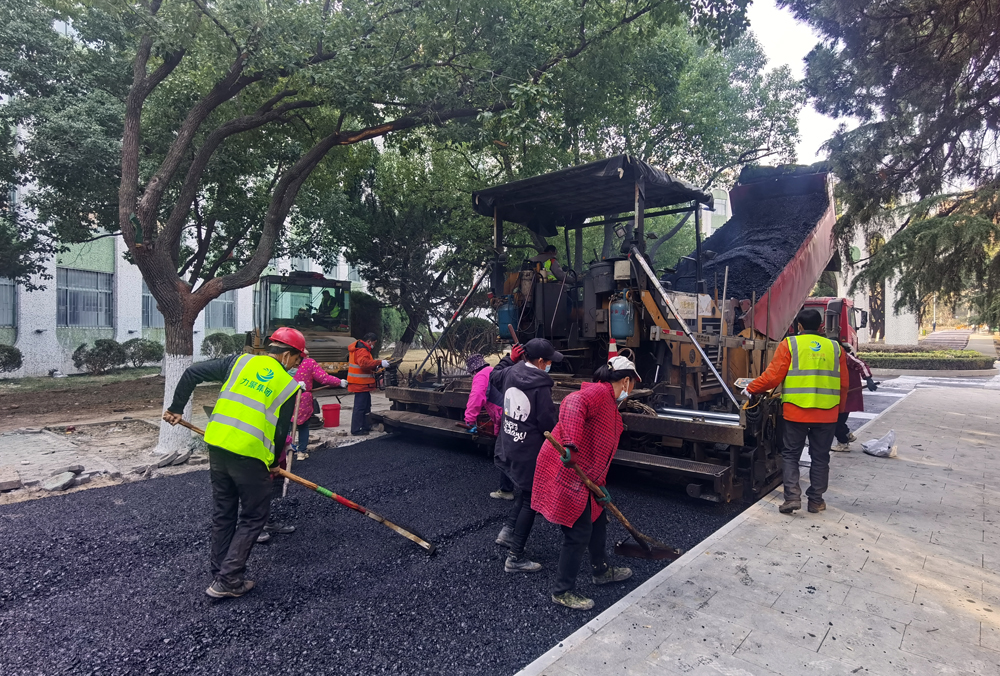 本网讯 1月9日早,随着机器的轰鸣声,我校校园道路“白加黑”提升改造工程进入摊铺沥青施工阶段。
