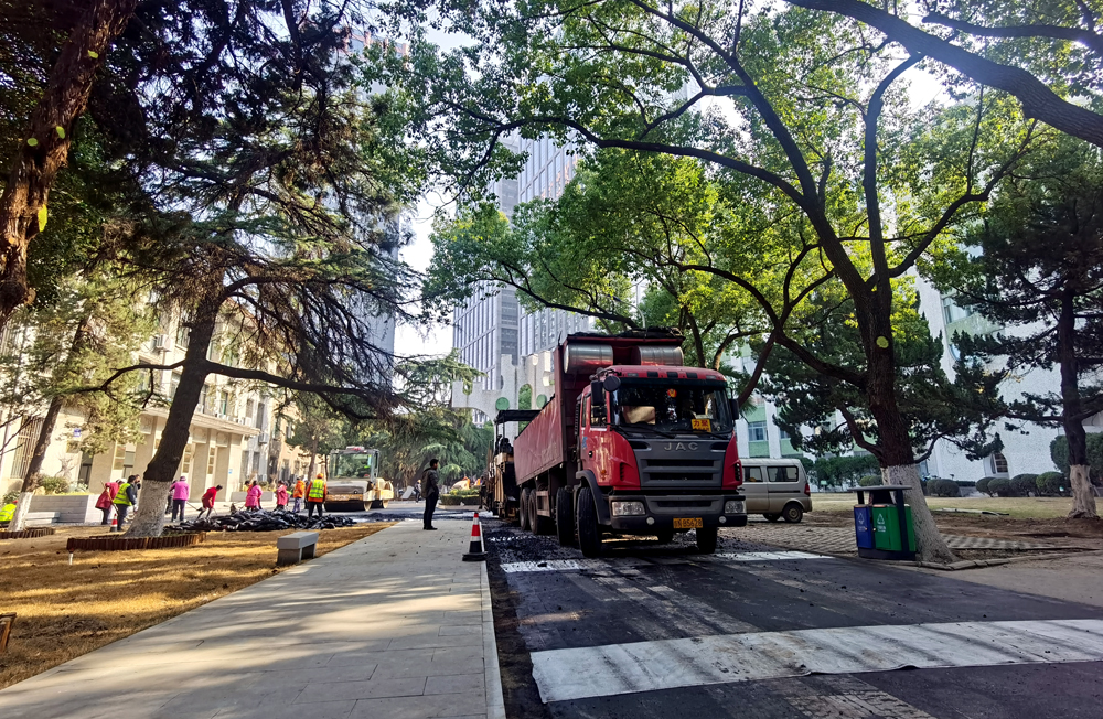 该项目共涉及校园内19条道路,总长约9.9千米,工程主要内容为机动车道“白加黑”、人行道铺装更换等。预计,春节前完成底层沥青摊铺以及部分井盖提升安装,年后安装侧石、铺设人行道,3月中下旬全面完成面层沥青施工、标识标牌安装等,届时校园道路和整体环境将有质的提升。