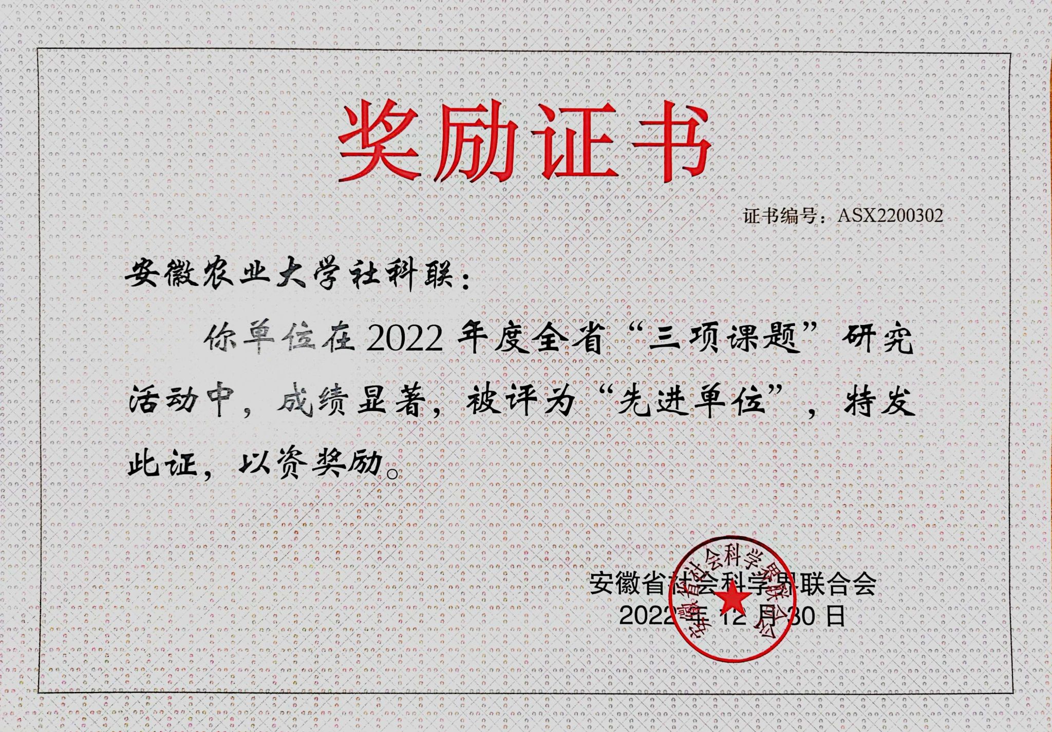 省社科联“三项课题”研究活动围绕学习贯彻党的二十大精神、推动党的二十大精神在安徽见行见效,发挥专业优势、深化调查研究,聚焦省委决策部署,紧密结合安徽发展实际,开展基础理论研究、应用对策研究、社科普及研究的三项课题研究活动,为加快建设现代化美好安徽建设提供理论支撑和智力支持。我校社科联每年坚持开展“三项课题”研究活动,坚持以习近平新时代中国特色社会主义思想为指导,团结引领广大社科工作者,在学习宣传党的二十大精神中争当排头兵,着力推出有实践指导意义、有决策参考价值的优秀成果,为贯彻落实党的二十大精神和省委决策部署建言献策。(一审:倪健 二审:王瑞 三审:曹雷)