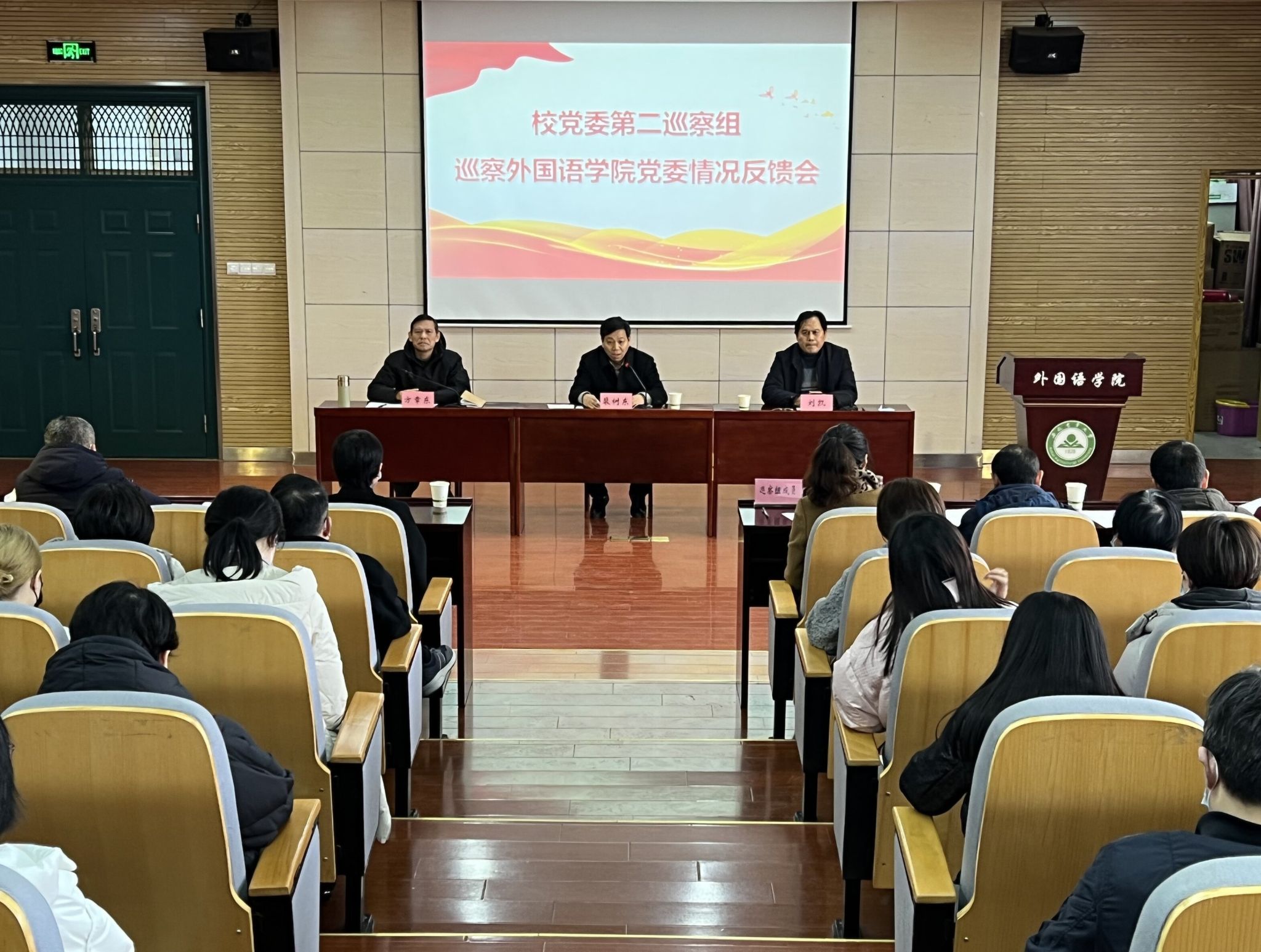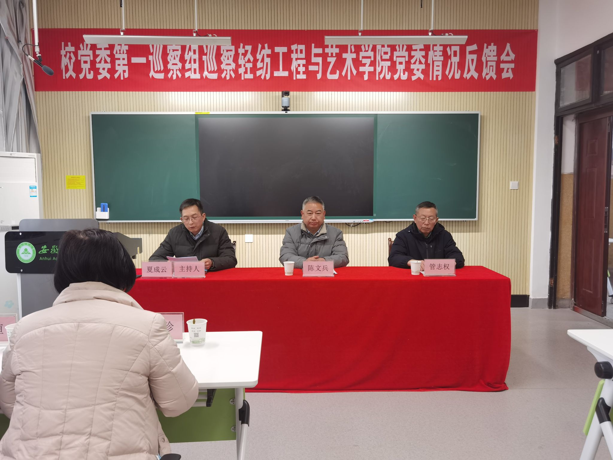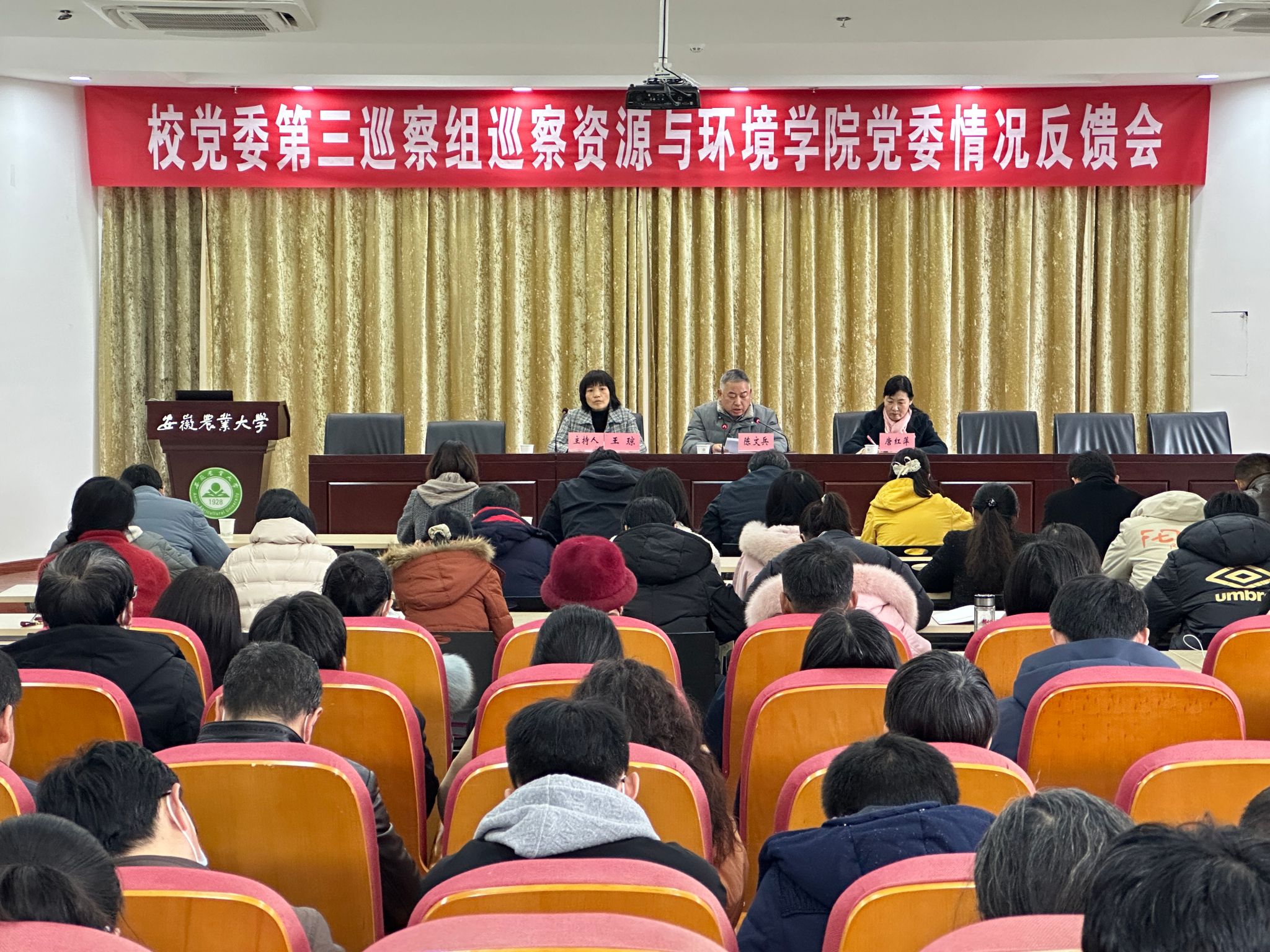 本网讯 2月17日下午,七届校党委第五轮巡察三个巡察组分别向轻纺工程与艺术学院党委、外国语学院党委、资源与环境学院党委现场反馈巡察情况。校党委副书记、巡察工作领导小组副组长裴树东,校党委常委、纪委书记、监察专员、巡察工作领导小组副组长陈文兵分别参加反馈会,并提出整改要求。反馈会前,各巡察组向被巡察单位党政主要负责人通报了巡察发现的主要问题。党委巡察办主要负责人和巡察组成员及被巡察单位全体教职工参加了反馈会。