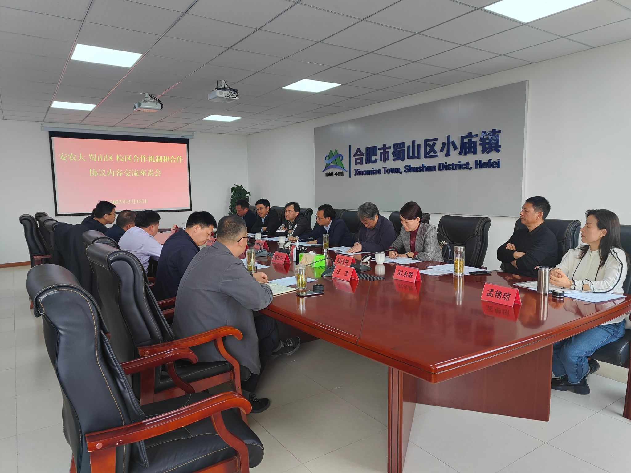 本网讯 3月15日上午,党委常委、副校长操海群带队赴蜀山区小庙镇深入对接校区合作事宜。蜀山区副区长杨桢热情接待操海群一行,并在小庙镇政府主持召开座谈会。