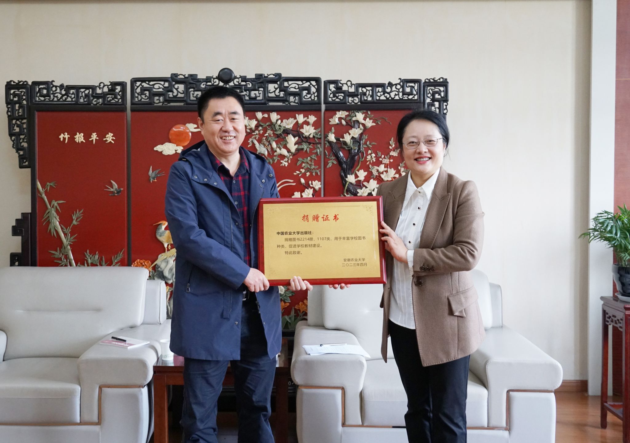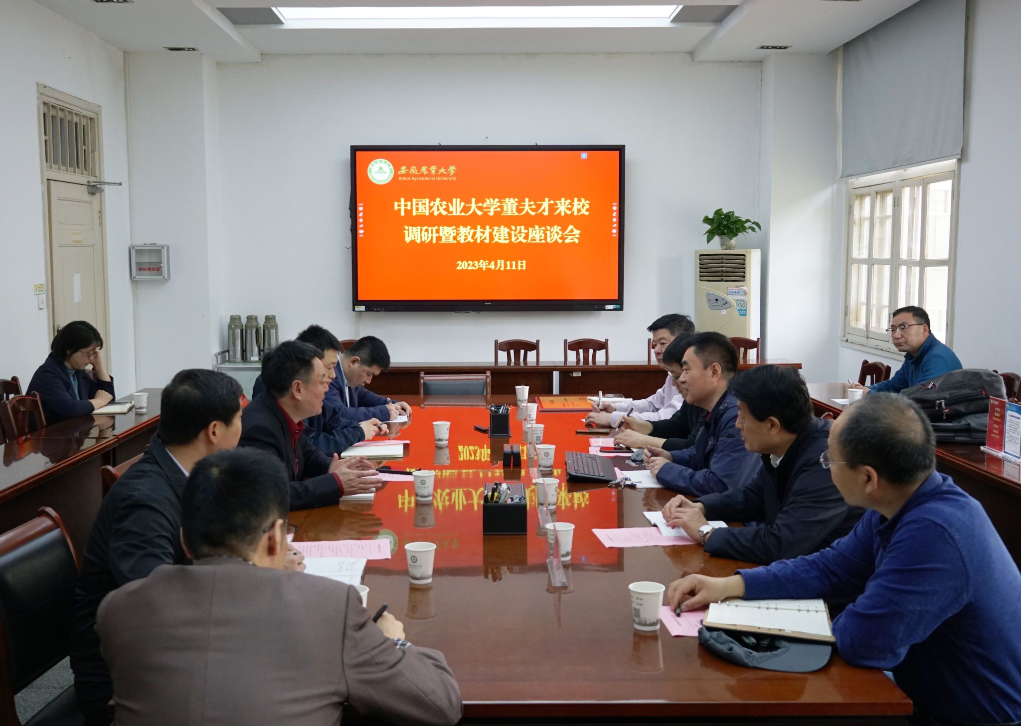 本网讯 4月11日,中国农业大学出版社社长董夫才一行六人来我校交流调研教材建设工作,并向我校捐赠一批图书。校党委常委、副校长李红及有关职能部门负责人出席了捐赠仪式。