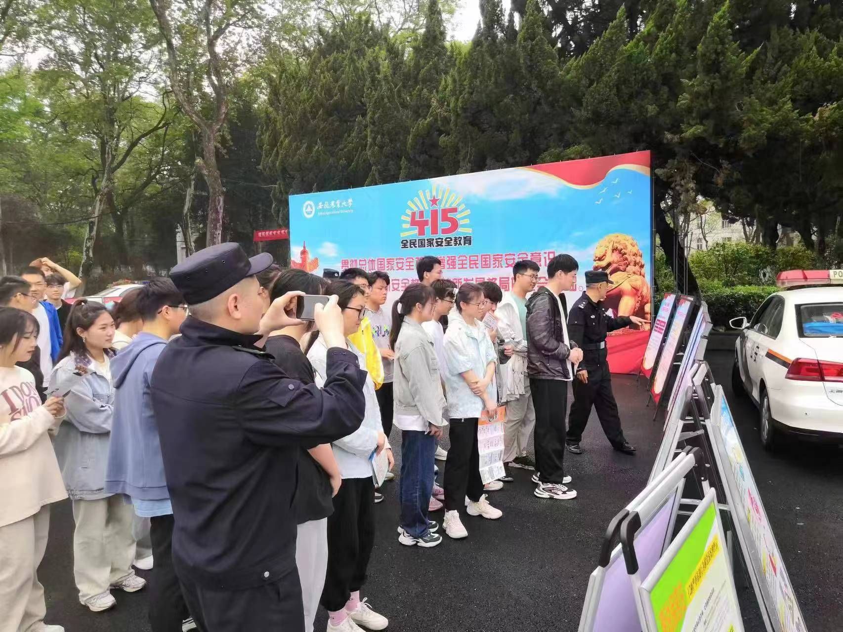 今年是我国第八个全民国家安全教育日,为增强师生国家安全意识、树立总体国家安全观,营造和谐、文明、安定的校园环境,学校举行了系列宣传教育活动。活动现场,民警讲解了与国家安全相关的法律知识,以展板的形式宣传国家安全相关法律法规。现场发放宣传资料4000余份。