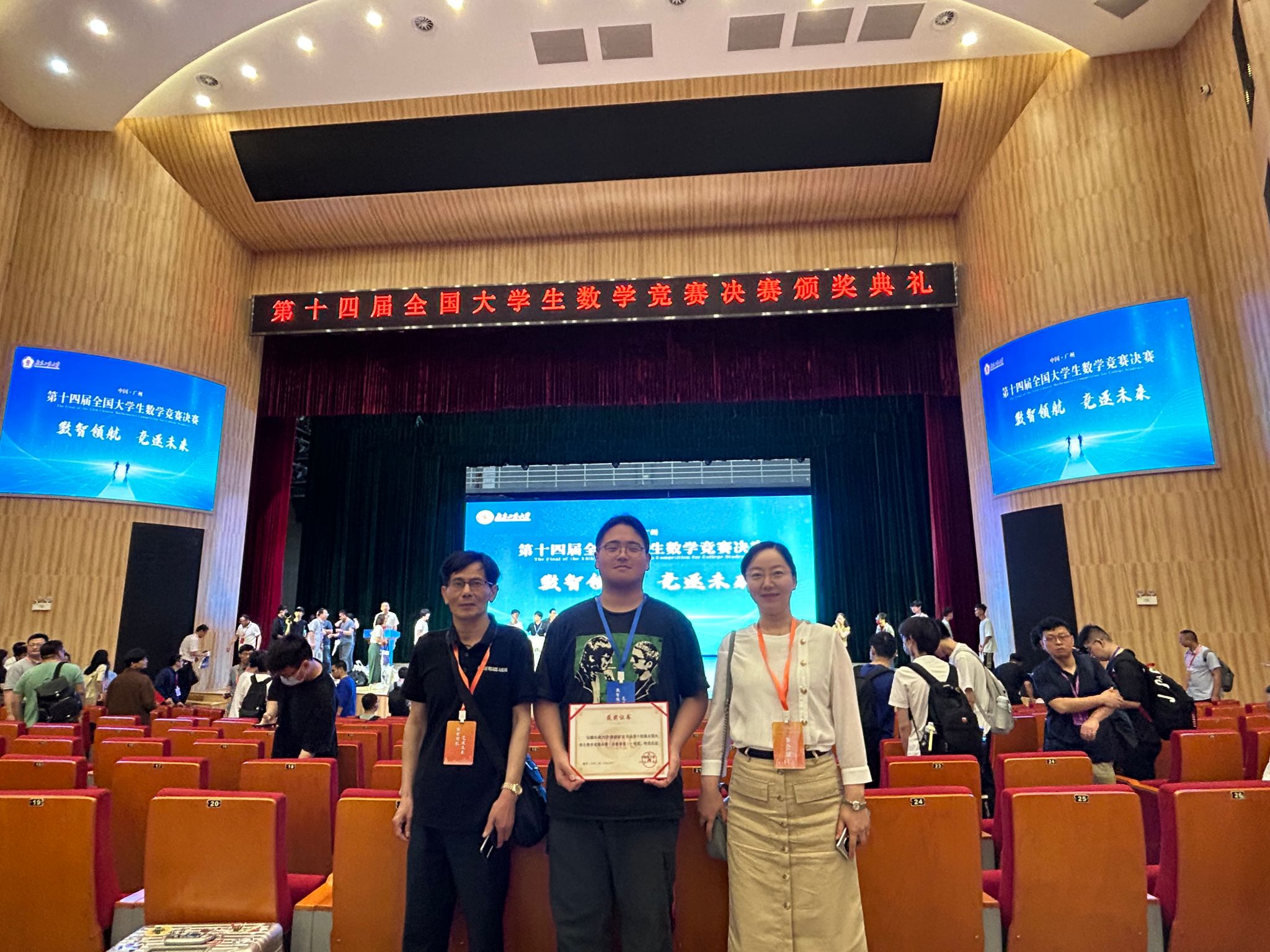 本网讯 由中国数学会主办的第十四届全国大学生数学竞赛决赛5月26日至28日在广东工业大学举行,理学院教师汪宏喜和周丽指导的2020级数据科学与大数据技术专业学子徐薛崔宝表现突出,斩获非数学类一等奖佳绩,是安徽省唯一一个全国非数学类一等奖。