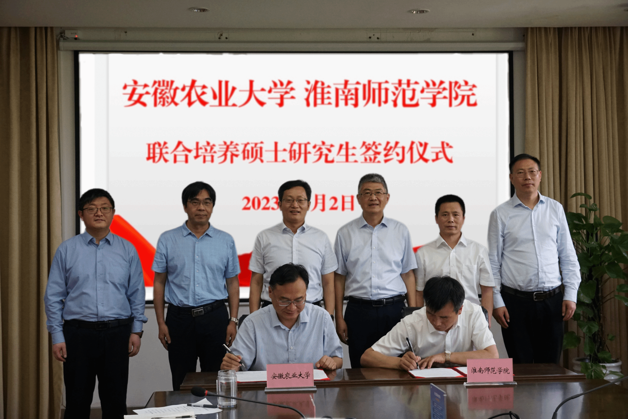 程刚与操海群分别代表双方签定联合培养硕士研究生协议。