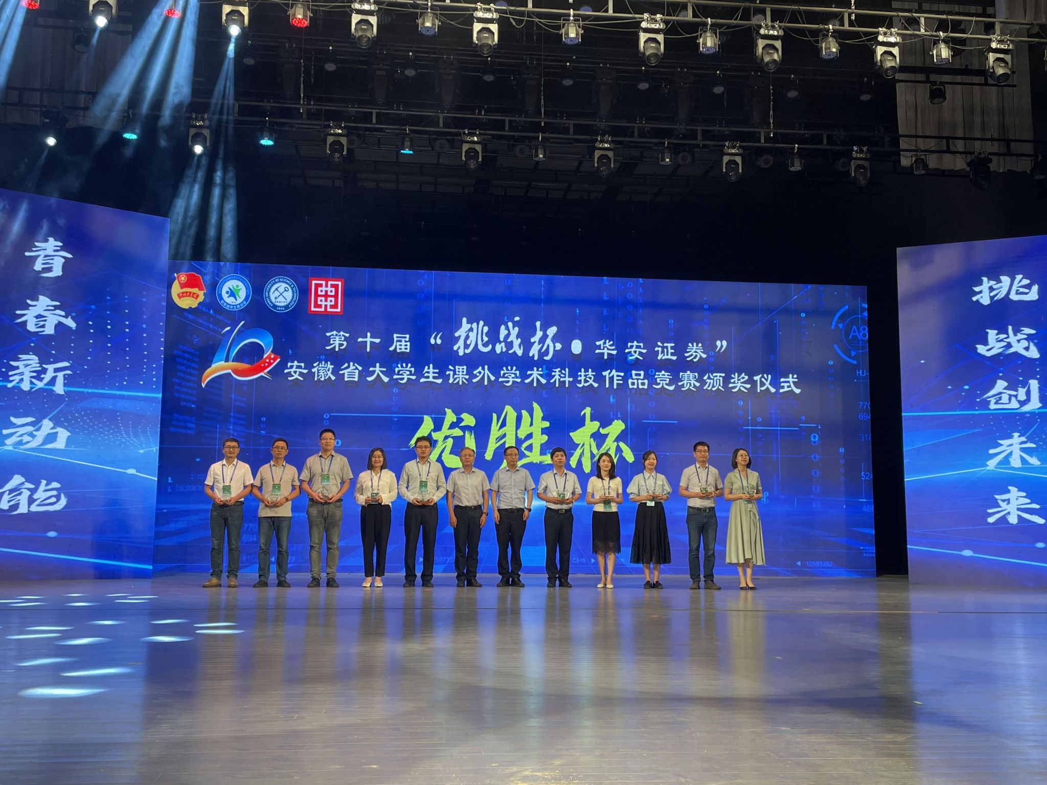 本网讯 挑战青春,科创未来。6月11日,由共青团安徽省委员会、安徽省教育厅、安徽省科学技术协会、安徽省社会科学院和安徽省学生联合会等单位共同主办的第十届“挑战杯·华安证券”安徽省大学生课外学术科技作品竞赛终审决赛在安徽理工大学落下帷幕。校党委副书记裴树东出席闭幕式并祝贺慰问我校获奖师生。我校参赛团队荣获一等奖7项,其中6件作品被推荐参加国赛,数量创历史新高。学校荣获竞赛“优胜杯”。