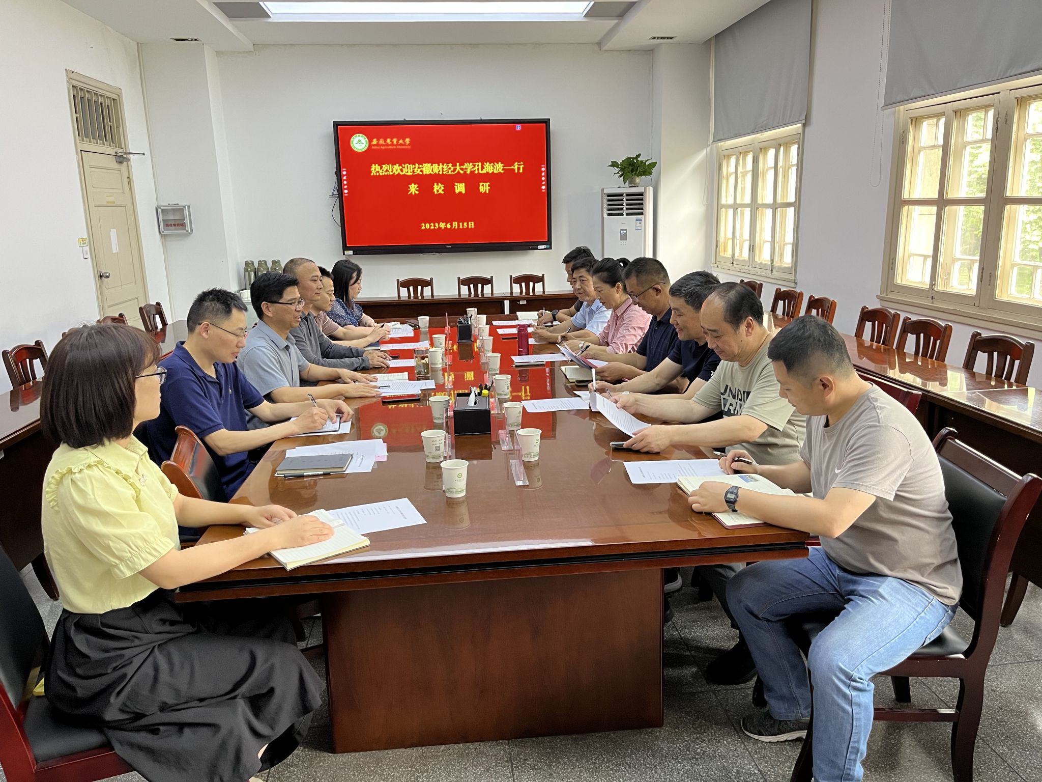 后勤保障处负责人介绍了学校的历史沿革、办学方向、办学规模,探索推进学生自我教育、自我管理、自我服务管理模式及后勤保障服务运行等方面情况。安徽财经大学后勤保障处负责人介绍了安财发展历程、办学规模、校园建设、后勤保障和服务等方面工作。两校相关部门负责人交流了零星维修监管、信息化赋能、管理的提质增效、干部队伍建设等工作并就校园基础设施建设、校园绿化规划、食品安全管理等工作进行了探讨。一致同意开展更加广泛的交流和合作,以高质量的后勤管理和服务保障学校高质量发展。