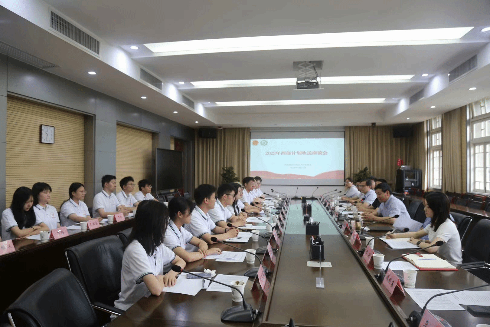 本网讯 6月16日上午,我校2023年大学生志愿服务西部计划欢送会在勤政楼第三会议室召开。校党委副书记裴树东,学生工作部、研究生工作部、招生就业处、团委等相关部门负责人及2023年全体大学生志愿服务西部计划志愿者参加了会议。会议由校团委负责同志主持。
