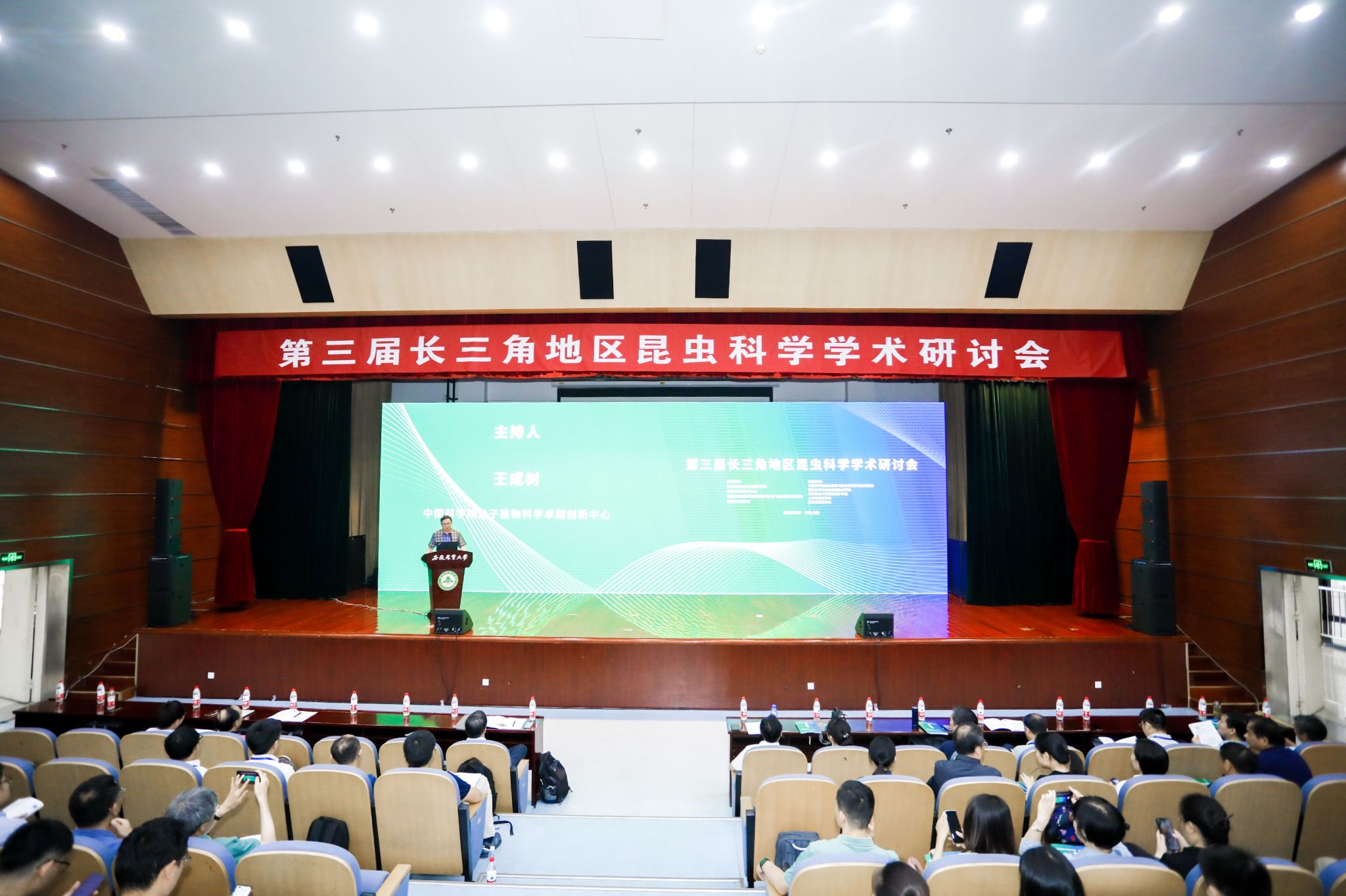 本网讯 6月17日,由安徽农业大学植物保护学院、安徽省植物保护总站、安徽省农业科学院植物保护与农产品质量安全研究所、安徽省昆虫学会主办的“第三届长三角地区昆虫科学学术研讨会”在我校图书馆第一报告厅召开。来自中国科学院昆虫发育与进化生物学重点实验室、浙江大学农业与生物技术学院、南京农业大学植物保护学院、上海市昆虫学会、浙江省昆虫学会等近200名专家学者、科研人员出席会议,3万余人次线上收看直播。