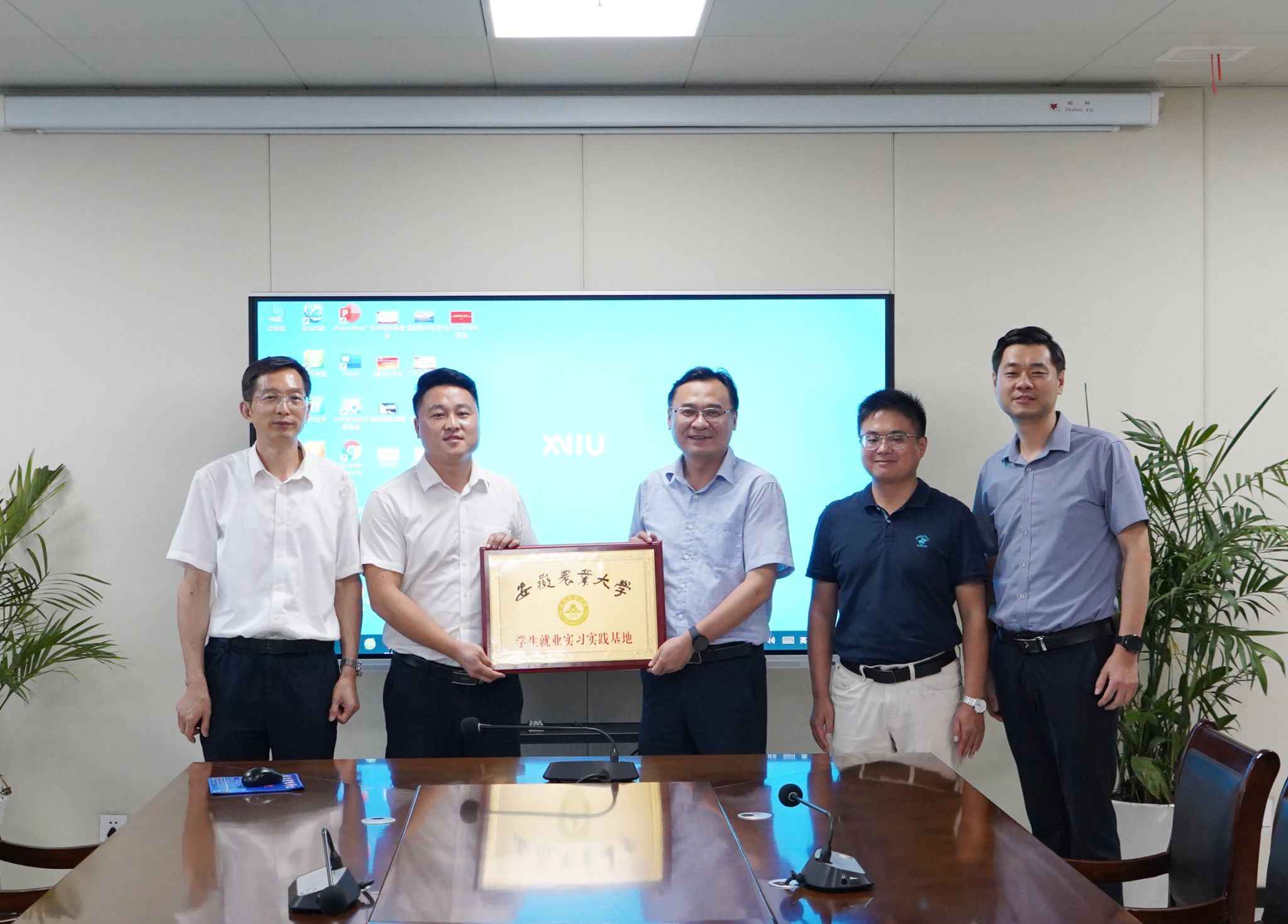 会后,操海群等与会领导与科技小院师生合影留念,并前往科技小院所在地——郎溪县经开区十字园区考察调研,为园区企业安徽万方织染有限公司授牌就业实习实践基地。