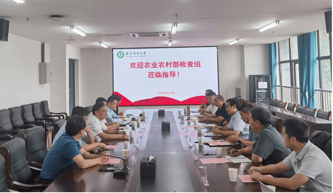 本网讯 8月29日,农业农村部全国农技中心副主任刘信一行来我校检查指导农业转基因安全管理工作。安徽省农业农村厅科教处负责同志陪同指导。我校党委常委、副校长操海群,科技处、教务处、农学院负责同志等参加座谈。