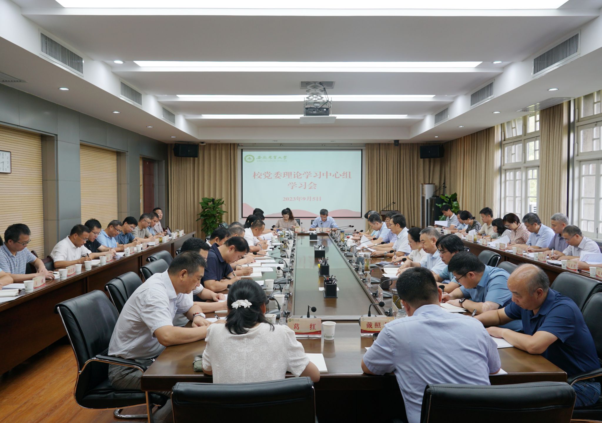 本网讯 9月5日上午,校党委理论学习中心组召开集中学习会,校党委书记张庆亮主持会议。校党委中心组成员,机关各部门、校直各单位主要负责人,各二级党组织书记参加会议。