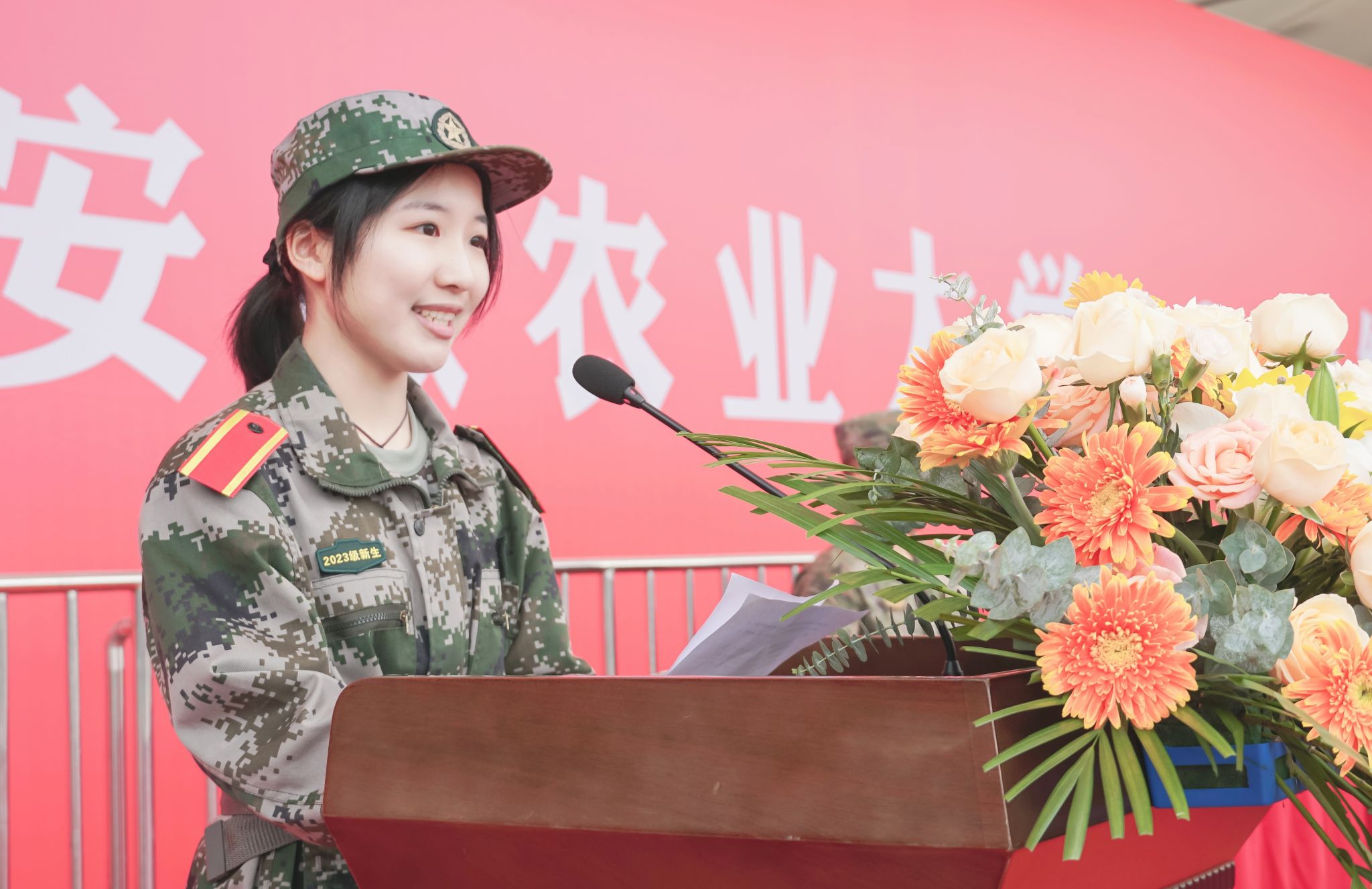 会上,教师代表、动物科技学院教授殷宗俊,承训军官代表,校友代表、安徽珍珠水泥集团股份有限公司董事长高峰,老生代表、2022级农村发展专业硕士研究生季嘉伟,新生代表、2023级茶学专业吴嘉美分别作了发言。(一审:周晓璇 二审:夏晓昀 三审:姚莉)