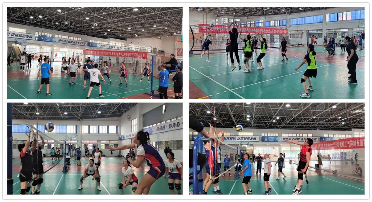 安徽建筑大学和皖西学院均为安徽省中片区高校,在安徽省历届高校教职工气排球比赛中都取得过不俗战绩,与我校教职工气排球队在安徽省以及合肥市各类比赛活动中交流比较频繁,也因此结下了较为深厚的友谊。两校教职工气排球队在欣闻我校正值95周年校庆,学校上下举行各类纪念活动之际,便欣然应邀来校参加交流活动。赛场内,各队参赛队员全力以赴,无论是攻防转换还是默契配合,都展现出了高超的水平,精湛的球技让人目不暇接,场下的观众也纷纷为场上队员的精彩表现鼓掌助威,加油呐喊,充分展现出了三校教职工团结协作、积极进取的精神风貌。