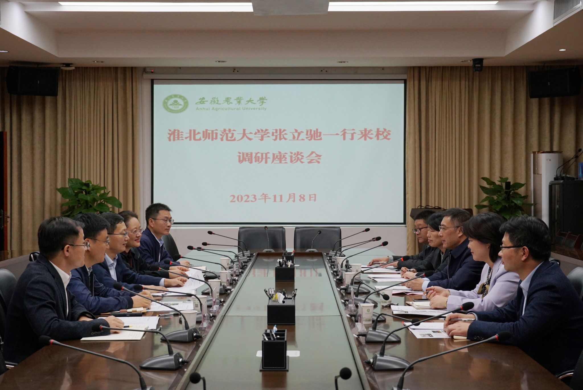 座谈中,双方围绕学科建设、科学研究、社会服务等进行了深入交流,表示将进一步加强合作,优势互补、互利共赢,加快推进内涵式、高质量发展,携手为现代化美好安徽建设贡献高教力量。