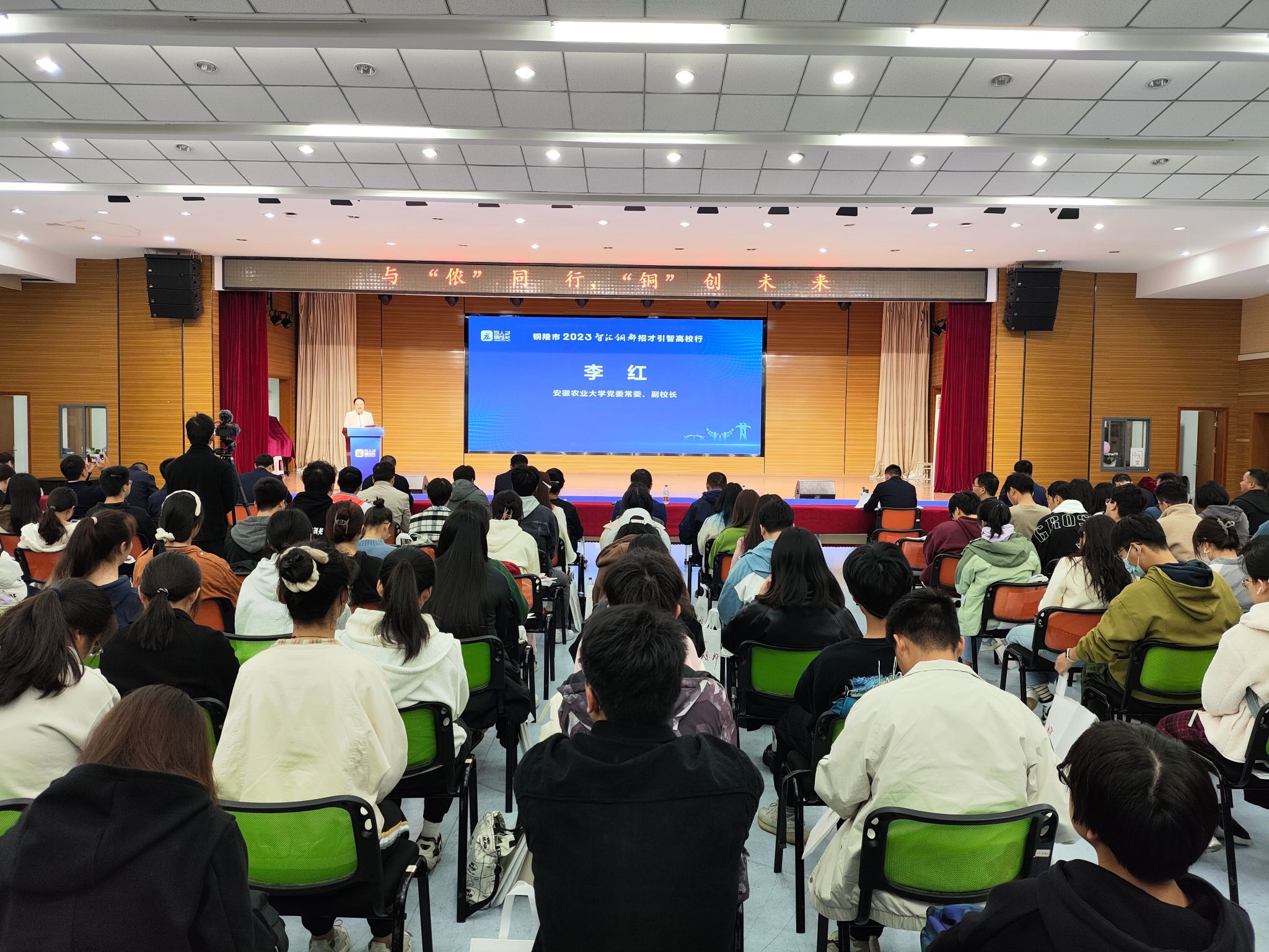 活动中,铜陵市人力资源和社会保障局负责人作铜陵市人才政策推介,铜陵市农业农村局负责人发布了农业企业岗位需求,重点招聘企业普农集团、有机地标分别作宣讲推介,在铜工作校友代表、我校2008届毕业生方慧娟分享了自己的创业经历。在随后举行的专场招聘活动中,共有铜陵市27家重点企业参加,提供就业岗位220余个,我校300余名毕业生参加了招聘活动。