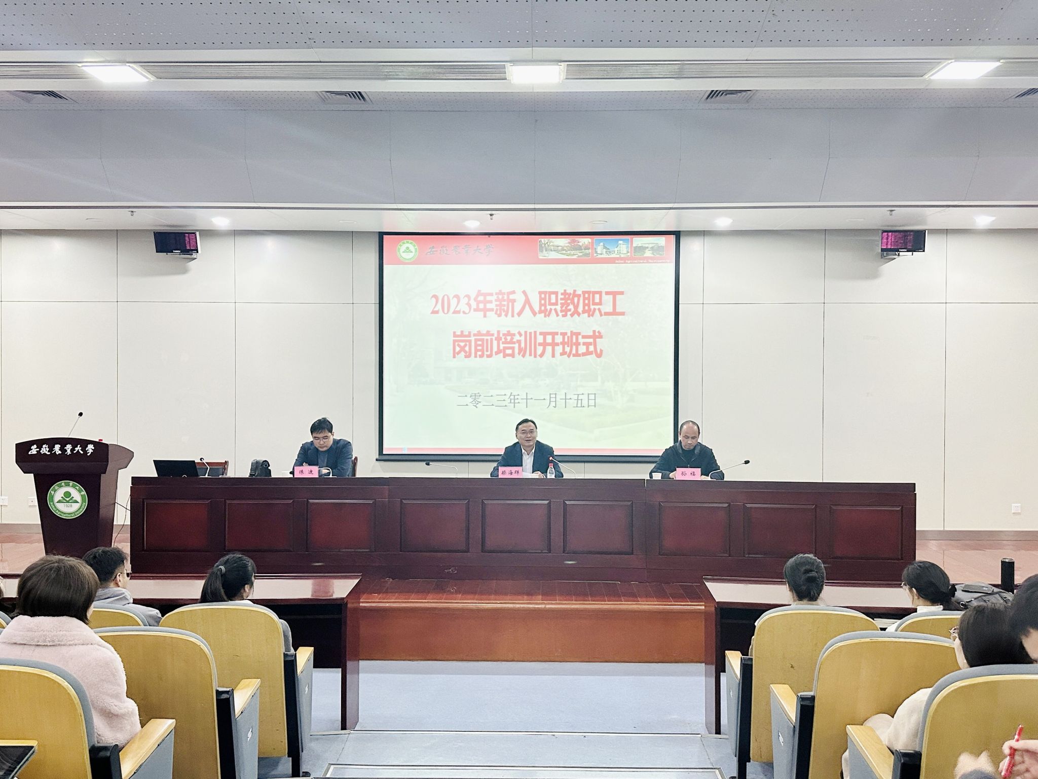 开班式上,操海群对新入职教师表示欢迎,他指出,当前学校坚持“改革开放创新”的办学理念,教师队伍逐步年轻化,干事创业劲头正足,发展前景正好,高水平农业大学建设需要大家担当作为,也值得大家共同期待。他强调,青年教师应始终胸怀“国之大者”,服务安徽农业强省建设需求,将个人成长融入学校事业发展之中。理清楚学习与发展的关系,深入学习贯彻习近平新时代中国特色社会主义思想,把握事物运行之形、时代发展之势,以党的创新理论武装头脑、指导实践、推动工作,认真学习教师职业行为准则,践行师德师风建设的内在要求和外在规范,坚持底线、不触红线,主动向身边优秀典型学习,融入团队,用好平台,促进发展;多思考教学和科研的关系,牢记育人使命,着眼学生发展,因材施教,对教学内容、方法和技术多点探索,对科研、创新和实践多点投入,以课堂“言传”,以科研“身教”,两者相辅相成,共同提高人才培养质量;把握好“校内”和“校外”的关系,支持教师加强校内合作,聚焦生产实际“接地气”,支持教师与同行专家交流学习,开拓研究视野“走出去”;处理好当前和长远的关系,既要做应需求、显担当实事,也要做打基础、利长远的好事,以主人翁意识担负起爱校荣校兴校之责,立足当前,只争朝夕,着眼长远,久久为功。