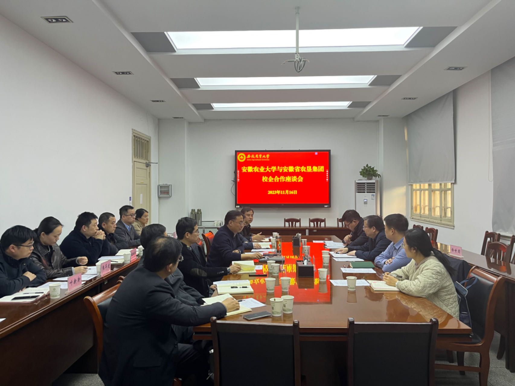 学校社会合作处、教务处、学生处、乡村振兴学院、研究生院、农学院、植物保护学院、园艺学院、资源与环境学院、工学院等单位负责人,安徽省农垦集团种植业部、人力资源部负责人参加了座谈会。(作者:胡翔 一审:张志平 二审:谈应权 三审:姚莉)